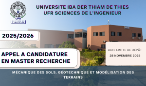 Appel à Candidature pour le recrutement d’un Enseignant-chercheur en Hydrogéologie à l’UFR Sciences de l’Ingénieur de L’Université Iba Der Thiam de Thiès.
