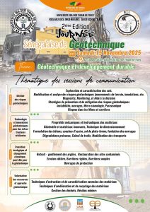 Le Réseau des Ingénieurs Géotechniciens (RIG) de l’UFR Sciences de l’Ingénieur (UFR SI) de l’Université Iba Der Thiam de Thiès (UIDT) a lancé un appel à communications pour la 2ème édition de la Journée Sénégalaise de Géotechnique qu’il organise sous le thème suivant : “Géotechnique et Développement durable”.